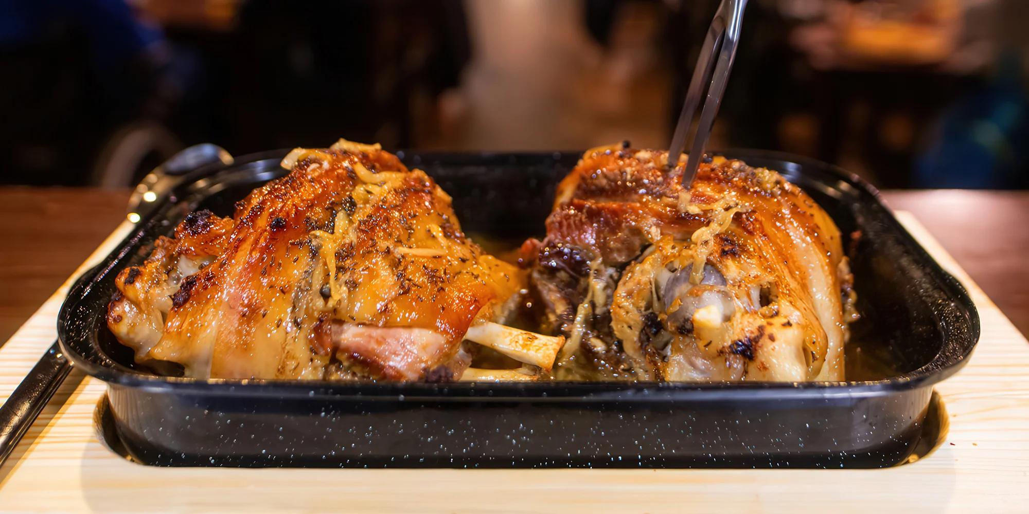 1-2 pomalu pečená kolena, přílohy i pivo Pilsner Urquel