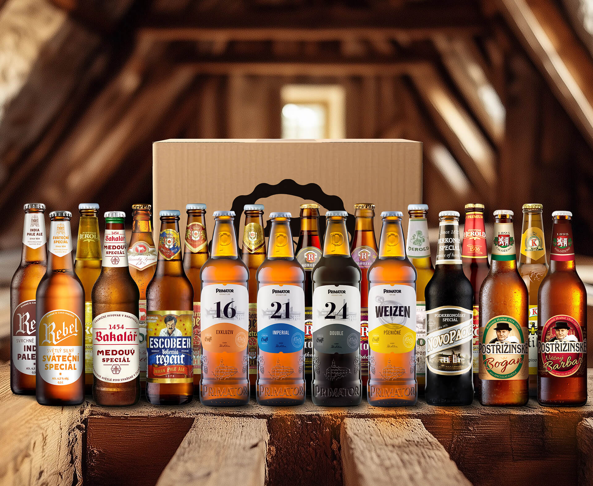 Užijte si 20 vybraných parádních speciálních piv z kvalitních malých a středních českých pivovarů v dárkovém ochutnávkovém balení. Piva jsou vybrána s láskou a pečlivostí. Toto dárkové balení udělá radost každému, kdo si chce pochutnat na poctivém pivu té nejvyšší kvality.
