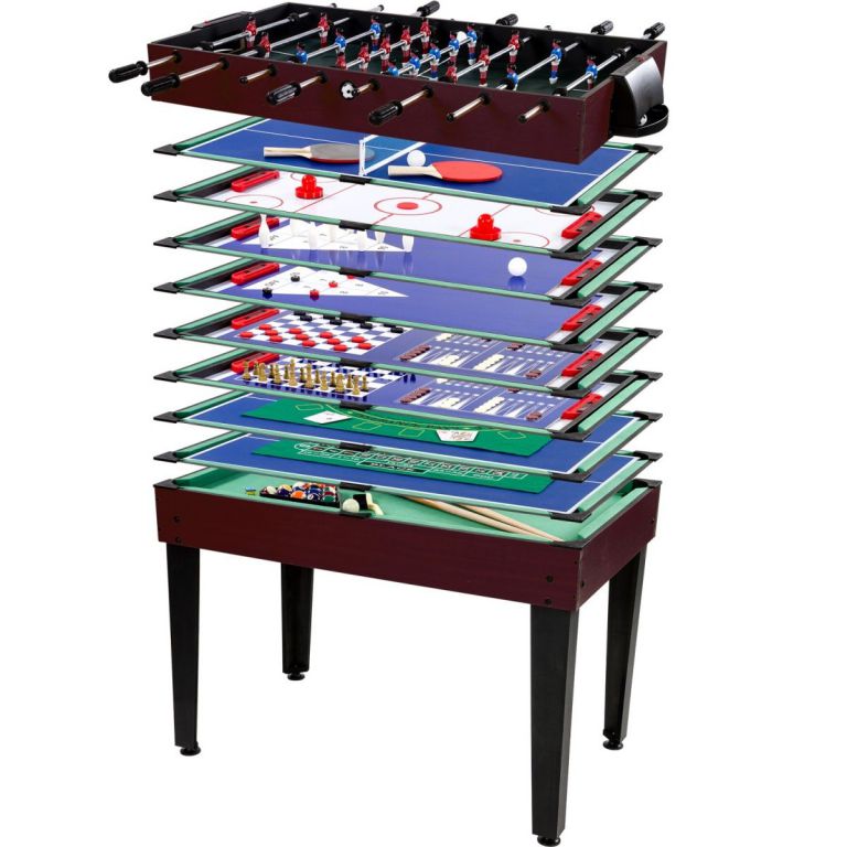 Ať už zařizujete dětský pokoj, klubovnu, prostor družiny nebo víkendovou chatu, nezapomeňte na multifunkční herní stůl, který skrývá 15 skvělých her a nekonečné chvíle zábavy. Herní stůl je prakticky skladný a množství her a příslušenství je důvtipně umístěno pod hrací deskou. Takže i když jednotlivé hry vyžadují tága, koule, pálky, puky, karty, kostky, figurky a další příslušenství, neznamená to, že budete potřebovat spousty místa na uskladnění. Zažijete spousty zábavy s rodinou i přáteli.