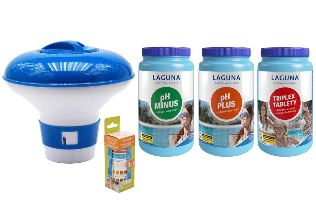 I.Základní set na chlorové ošetření vody (Triplex tablety, pH-, pH+, tester, plovák)