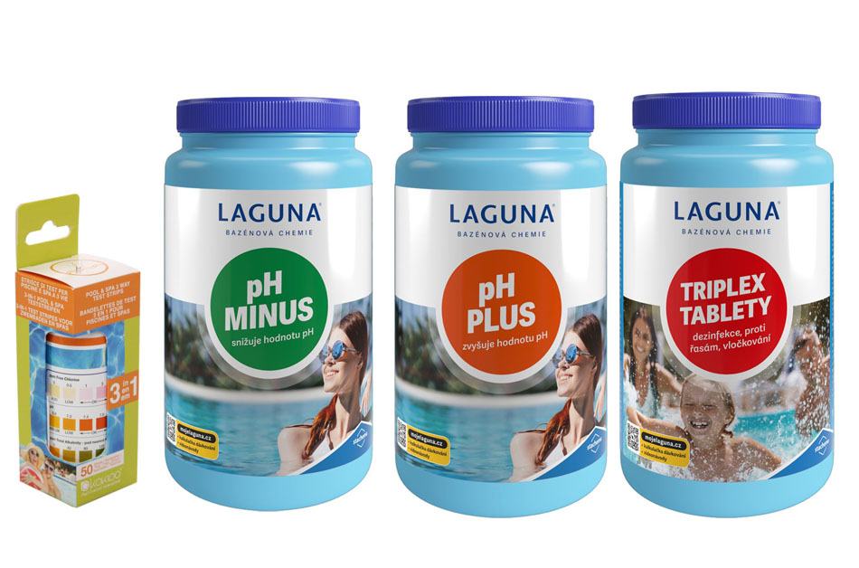 II.Základní set na chlorové ošetření vody (Triplex tablety, pH-, pH+, tester)