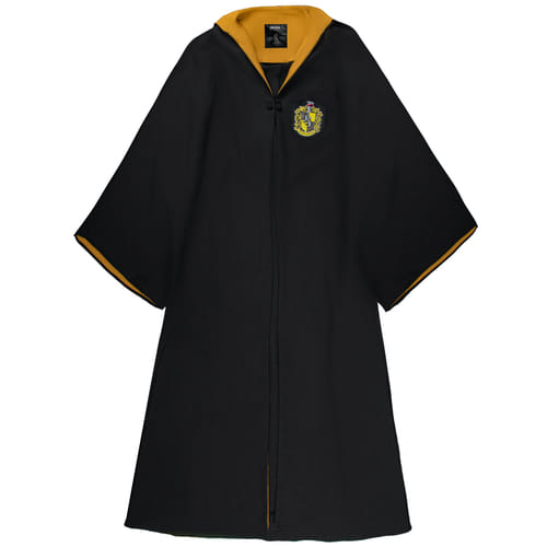Dlouhý černý čarodějnický hábit s kapucí, žlutě podšitý. Je zhotoven dle filmové předlohy bradavických hábitů studentů Mrzimoru z Harryho Pottera. Hábit je ideální prát na ruční praní do 40 stupňů, nesušit v sušičce na prádlo, žehlit přes navlhčenou bavlněnou látku.