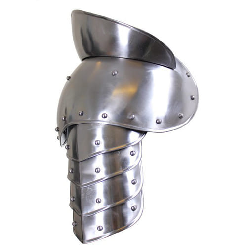 Pár kvalitních plátových ramen s ochranou krku a hlavy, zhotovených z plechu tloušťky cca 1 mm, upevňují se koženými řemeny a tkanicemi. Luxusní doplněk kostýmu pro LARP či bitvu. Konstrukce ramen poskytuje mimořádnou ochranu kloubům a podpaží. Vertikální talířový lamač mečů na vrcholu pavilónu zachycuje a odráží rány dříve, než mohou zasáhnout hlavu. Lamač mečů je mírně konkávní a poněkud vyšší vzadu než vpředu, takže poskytuje ochranu bez zhoršení výhledu. Šířka u ramena: 43 cm Šírka nad loktem: 22 cm
