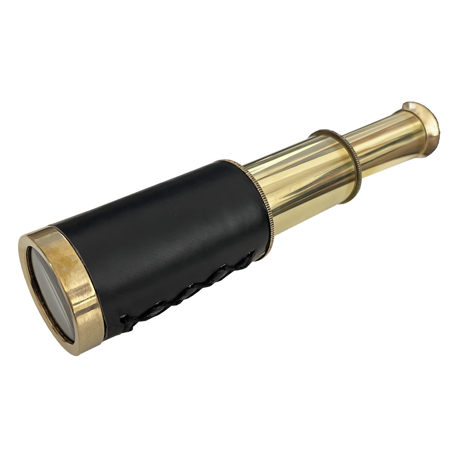Ať už jste pirát, objevitel, dobrodruh či válečný stratég. Nemusíte být nutně elf aby jste viděli do dálky! Nádherná funkční rekvizita – vysouvací trojdílný dalekohled v šikovném koženém pouzdře s tkanicí. Pouzdro je opatřeno poutkem k zavěšení na opasek. Samotný dalekohled je mosazný, hlavní část je obalena černou kůží. Délka dalekohledu v rozloženém stavu: 16 cm Průměr 3,3 cm na širším konci Průměr 2 cm na užším konci Složený pak měří 7,5cm