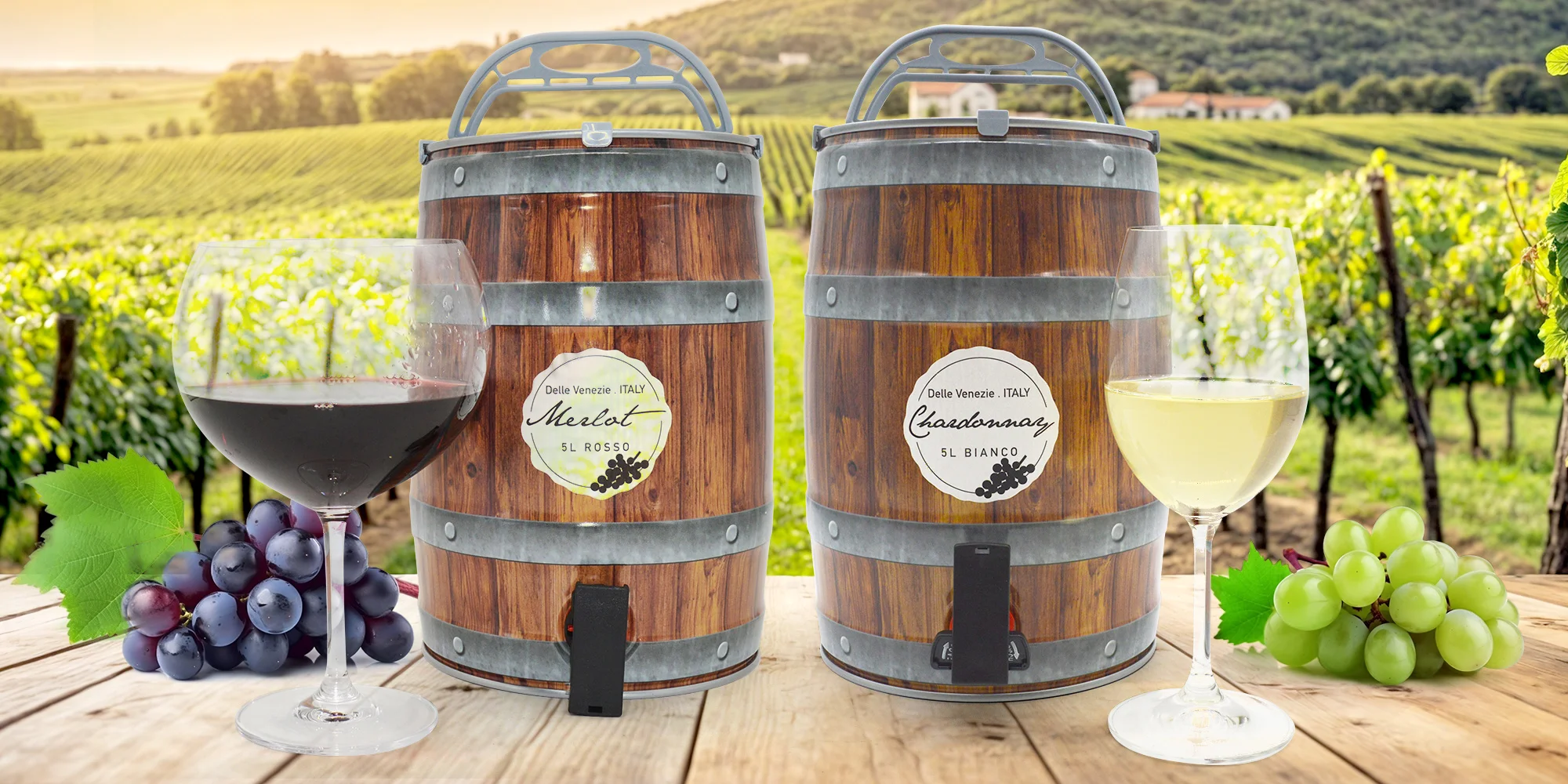 Znovuplnitelné 5l soudky vína i v dárkovém balení