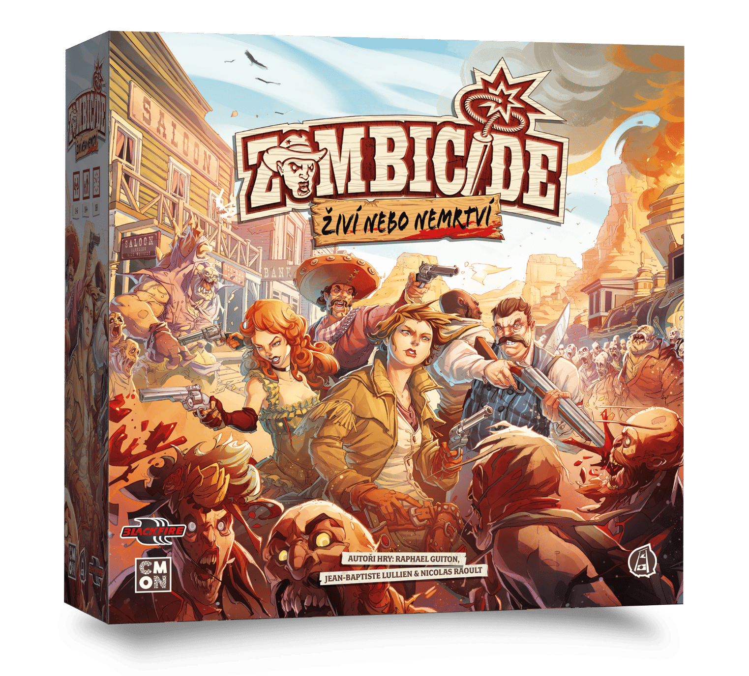 Zombicida vypukla na Divokém západě! Nemrtváci se objevili znenadání a sebrali nám svět, co jsme znali. Pár statečnejch vzalo do rukou zbraně a vydalo se bránit proti nakažený hordě. Tihle přeživší putují krajem, hledají zásoby, touží po odplatě a chtějí si užít trochu srandy na účet nemrtváků. Vy jste ti přeživší. Minulost je pryč. Vezměte svůj osud do vlastních rukou! Nastal čas výzev, nebezpečí, svobody, nových přátelství. Hrajte v týmu se svými kamarády coby přeživší za časů invaze zombií na Divokém západě, se speciálními akčními prvky! Zombie jsou ovládány samotnou hrou, s pomocí jednoduchých pravidel a balíčku karet. Nacházejte zbraně, zabíjejte zombie a odemkněte plný potenciál svých přeživších skrze získávání adrenalinu. Čím více zombií zabijete, tím více se jich pohrne! Živí nebo nemrtví využívá pravidla Zombicide, s pár místními specialitami, včetně rolí přeživších (rváč, věřící, pistolník nebo usedlík), nových pravidel pro oživování zombií, Gatlingovým kulometem či dokonce vlakem! Vyberte si svou bandu hrdinů ze 14 přeživších a nastolte znovu spravedlnost v hraničním městečku na kraji prérie, celkem v 10 misích využívajících modulární mapové díly. Obsah balení: 88 figurek (14 přeživších, 40 chodců, 16 ranařů, 16 běžců, 1 zrůda, 1 Gatlingův kulomet) 6 barevných podstavců pro přeživší 6 desek pro přeživší 4 karet přeživších 120 mini-karet (82 karet Vybavení, 37 karet zombií, 1 karta zrůdy) 12 oboustranných mapových dílů 6 kostek 48 ukazatelů 29 žetonů 1 pravidla