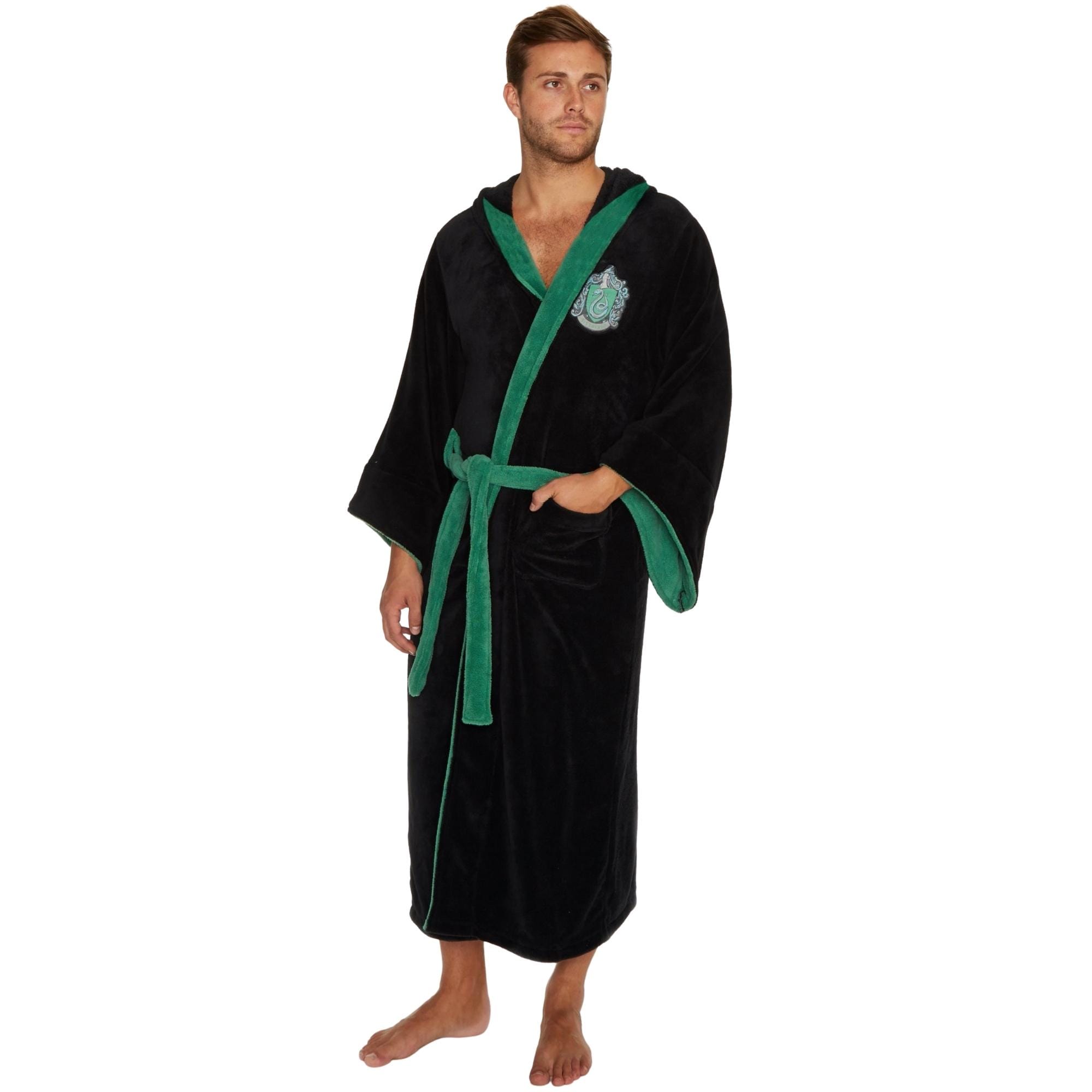 Slušivý pánský fleecový župan v barvách Zmijozelu, jedné z kolejí školy čar a kouzel v Bradavicích podle příběhů o Harry Potterovi. Župan má špičatou kapuci, dvě kapsy, pásek a rukávy ve spodní části řozšířené. Rozměry: délka 138 cm, šířka hrudníku 64 cm, délka rukávů 60 cm, šířka rukávů 32 cm.